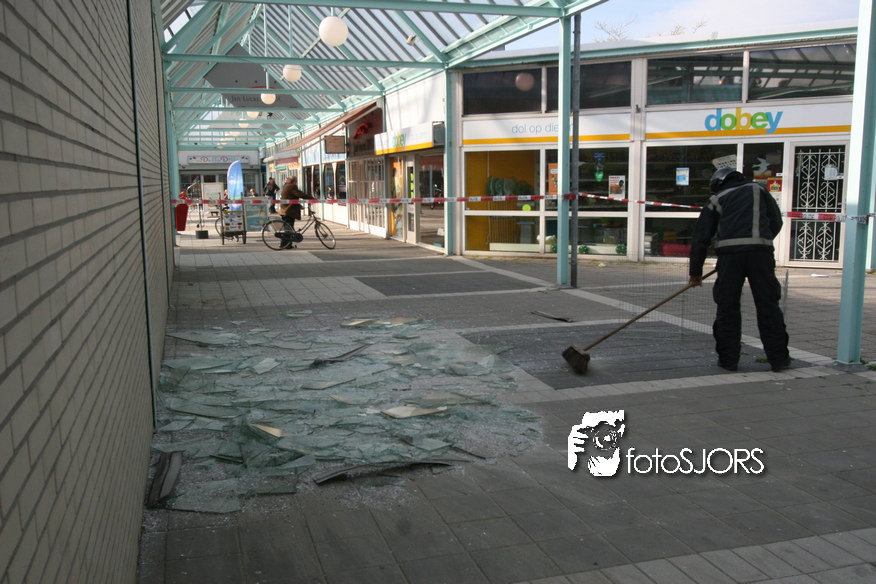 14-05-2010 - Brandweer haalt gevaarlijk loshangende glasplaten weg
