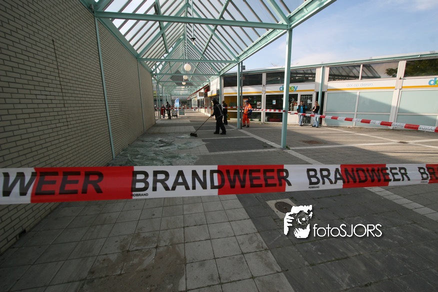 14-05-2010 - Brandweer haalt gevaarlijk loshangende glasplaten weg