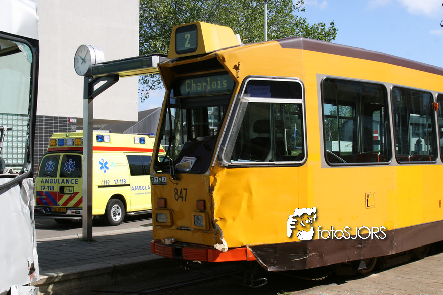 Brielselaan bij de Wolphaertsbocht is een tram tegen een andere tram gebotst 16-6-2010