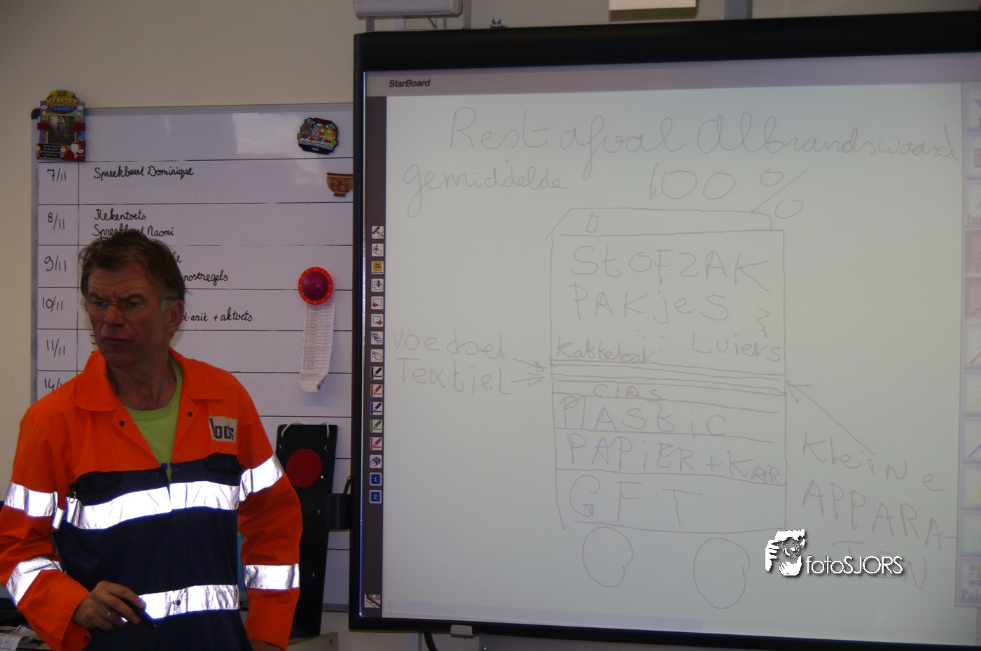 03-11-2011 Vuilnisman Koos geeft recycling les