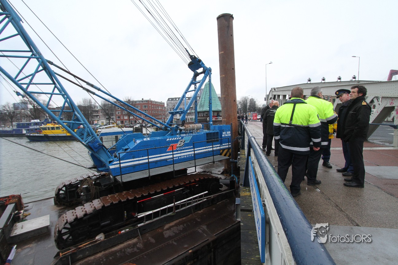 15-03-2013 Losgeslagen schip ramt Koningebrug Rotterdam