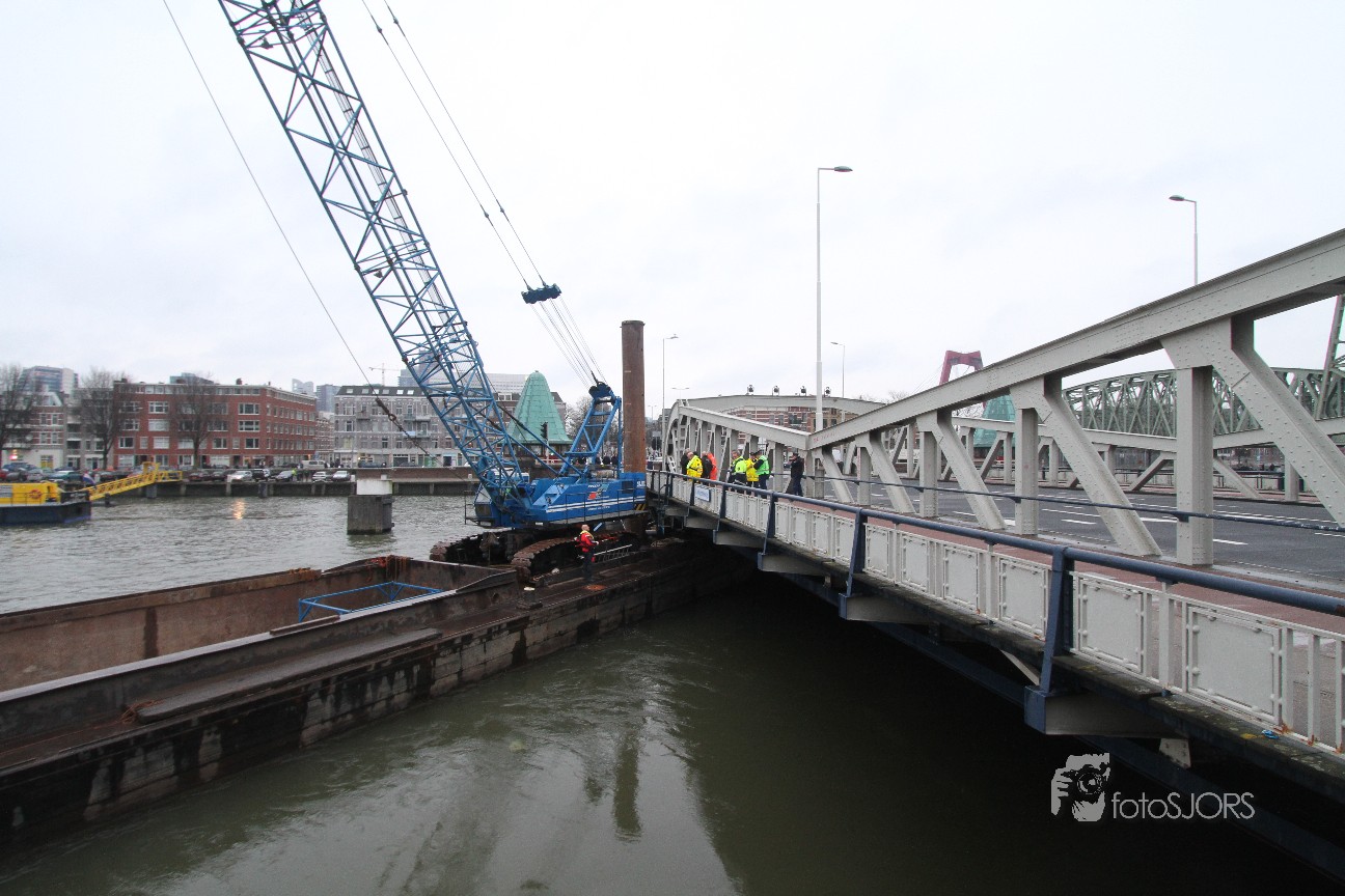 15-03-2013 Losgeslagen schip ramt Koningebrug Rotterdam
