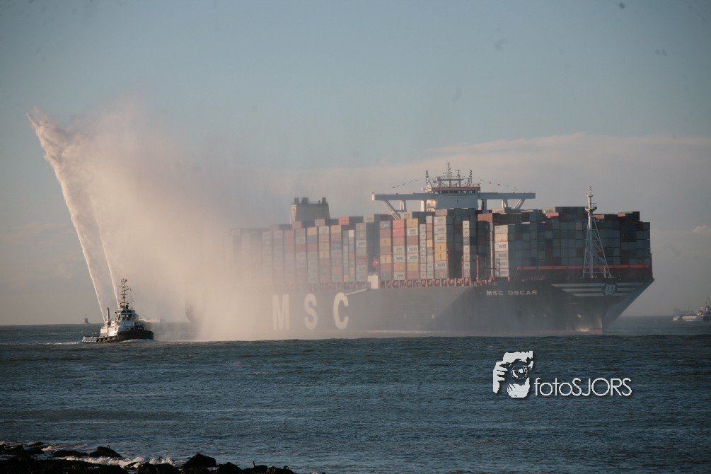 03-03-2015 - Grootste Containerschip ter wereld MSC Oscar vaart Nederland binnen