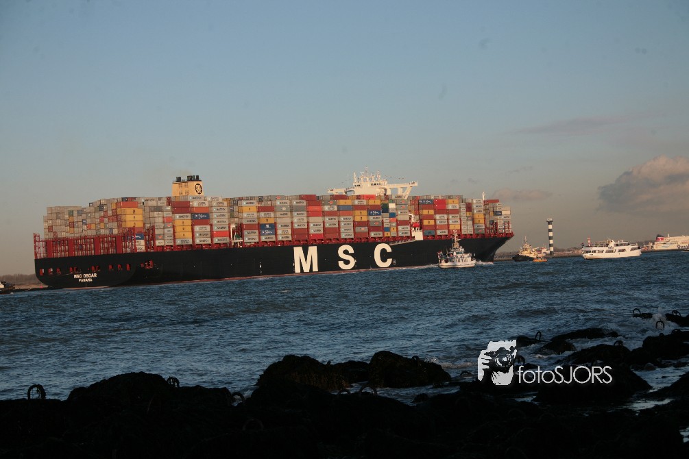 03-03-2015 - Grootste Containerschip ter wereld MSC Oscar vaart Nederland binnen
