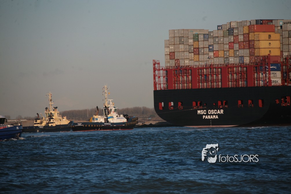 03-03-2015 - Grootste Containerschip ter wereld MSC Oscar vaart Nederland binnen