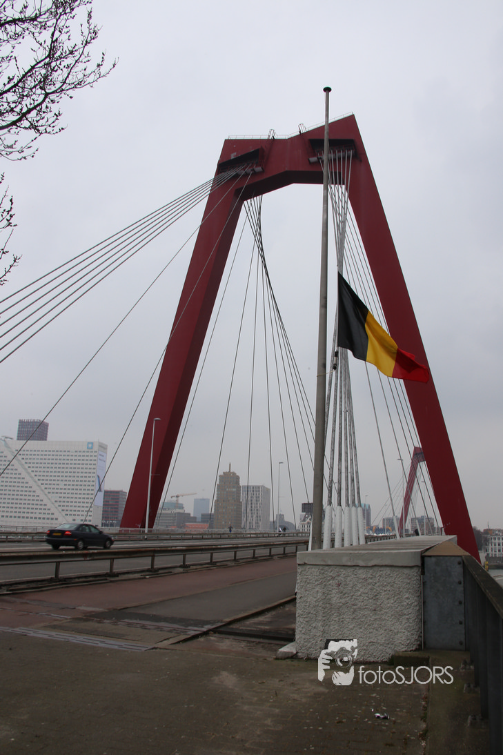 24-03-2016 - Rotterdam hijst belgische vlag halfstok
