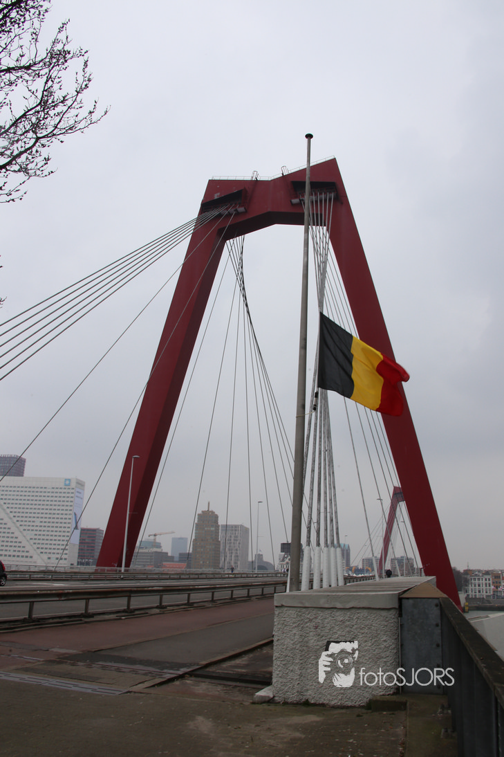 24-03-2016 - Rotterdam hijst belgische vlag halfstok