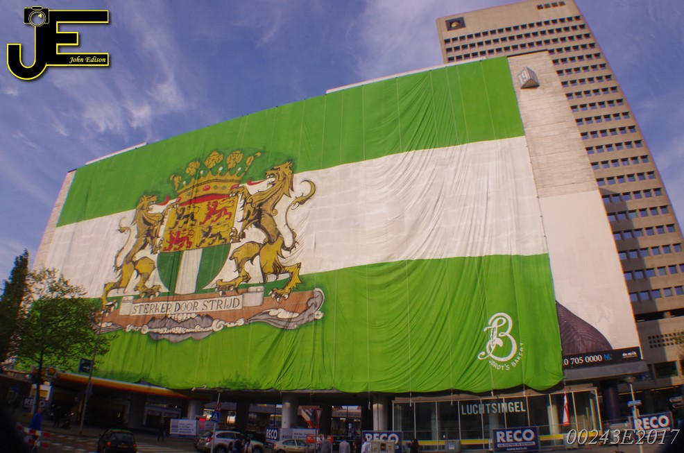 06-05-2017 - Rotterdamse vlag van 80x41 meter over Shell gebouw Rotterdam