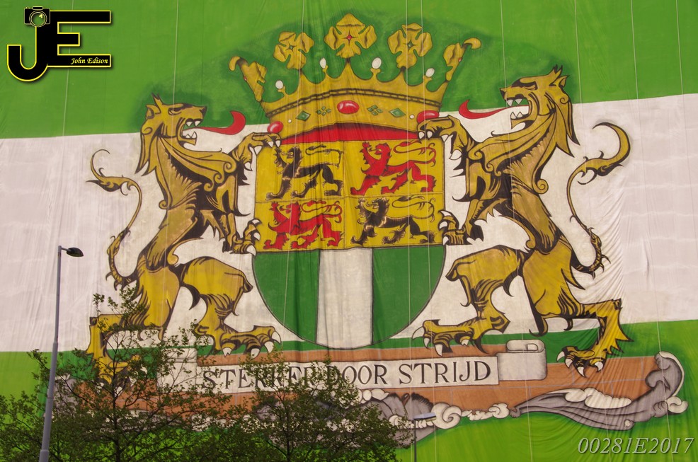 06-05-2017 - Rotterdamse vlag van 80x41 meter over Shell gebouw Rotterdam