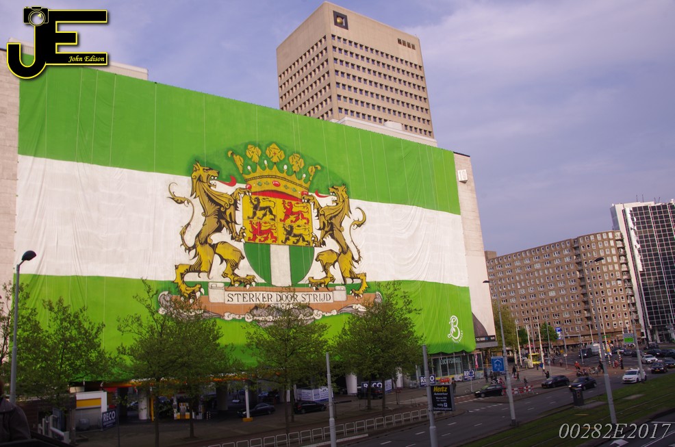 06-05-2017 - Rotterdamse vlag van 80x41 meter over Shell gebouw Rotterdam