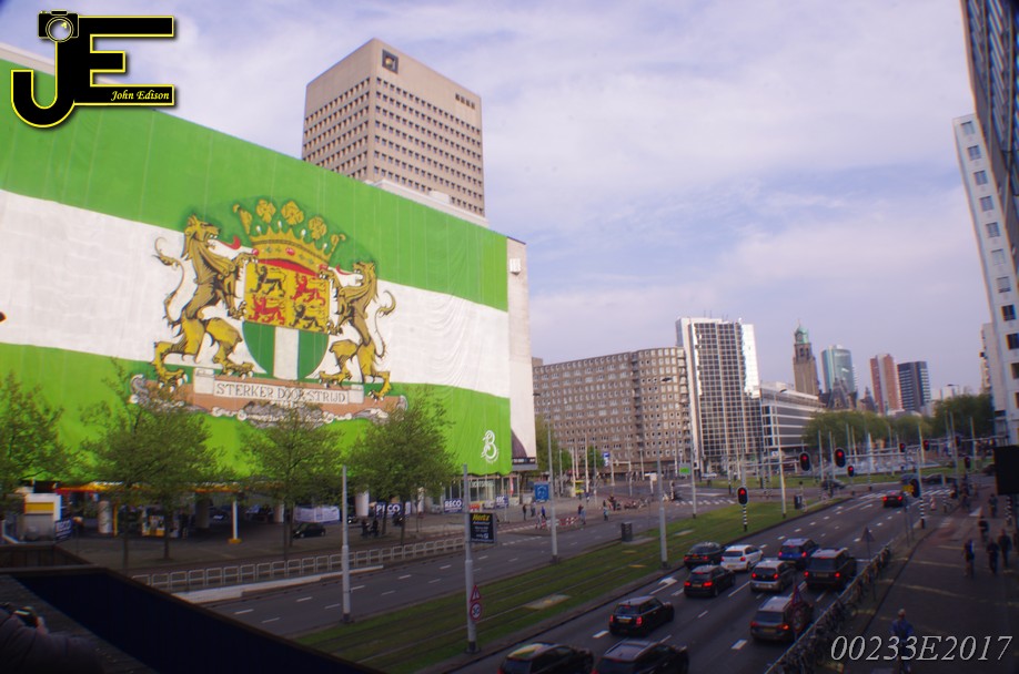 06-05-2017 - Rotterdamse vlag van 80x41 meter over Shell gebouw Rotterdam