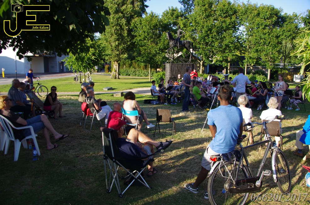 17-06-2017 Tuinstoelenconcert Volharding bij beeld van Biggo in Rhoon