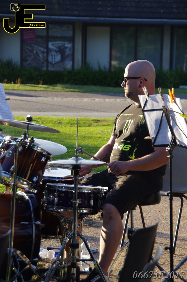 17-06-2017 Tuinstoelenconcert Volharding bij beeld van Biggo in Rhoon