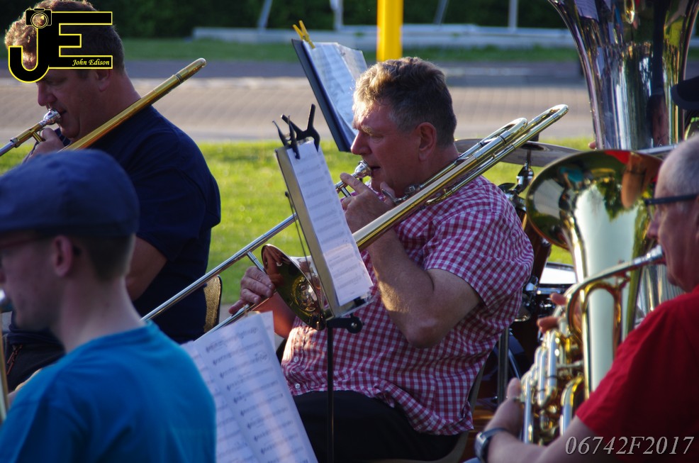 17-06-2017 Tuinstoelenconcert Volharding bij beeld van Biggo in Rhoon