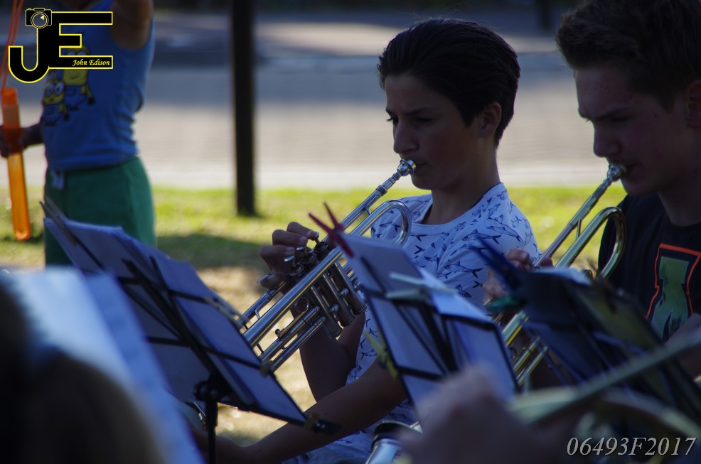 17-06-2017 Tuinstoelenconcert Volharding bij beeld van Biggo in Rhoon