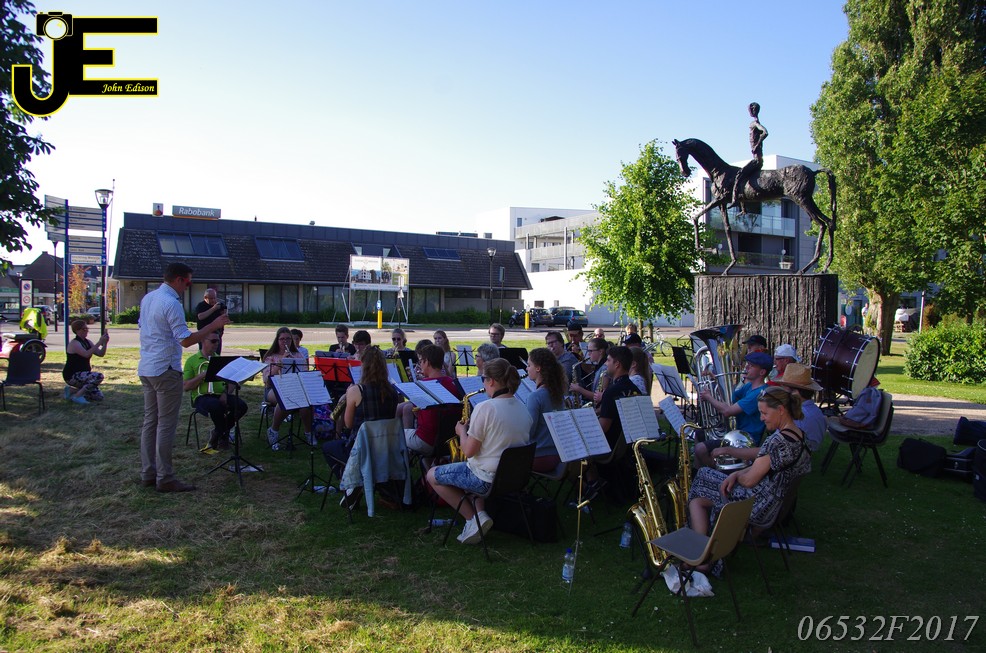 17-06-2017 Tuinstoelenconcert Volharding bij beeld van Biggo in Rhoon