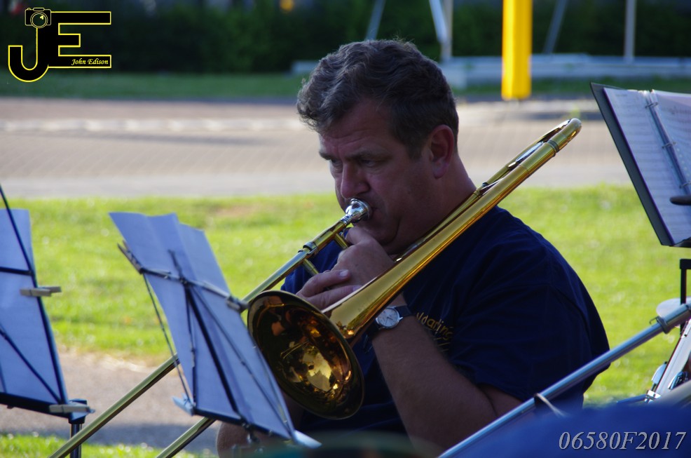 17-06-2017 Tuinstoelenconcert Volharding bij beeld van Biggo in Rhoon