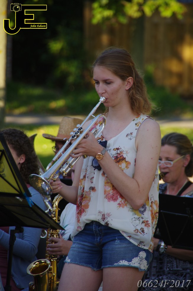 17-06-2017 Tuinstoelenconcert Volharding bij beeld van Biggo in Rhoon