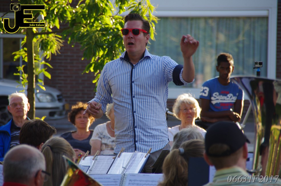 17-06-2017 Tuinstoelenconcert Volharding bij beeld van Biggo in Rhoon