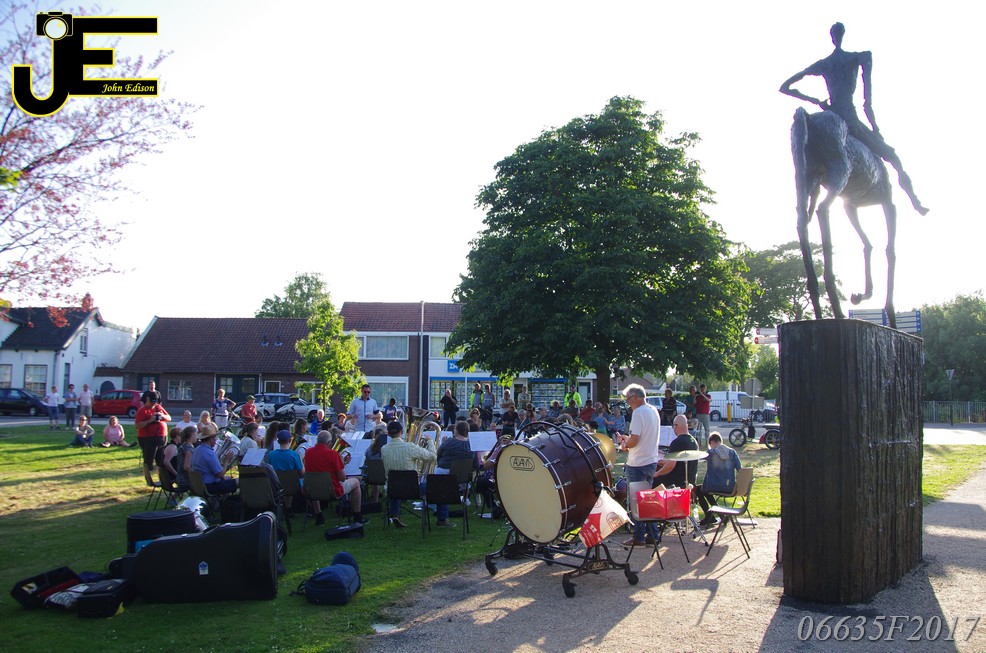 17-06-2017 Tuinstoelenconcert Volharding bij beeld van Biggo in Rhoon
