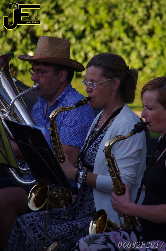 17-06-2017 Tuinstoelenconcert Volharding bij beeld van Biggo in Rhoon