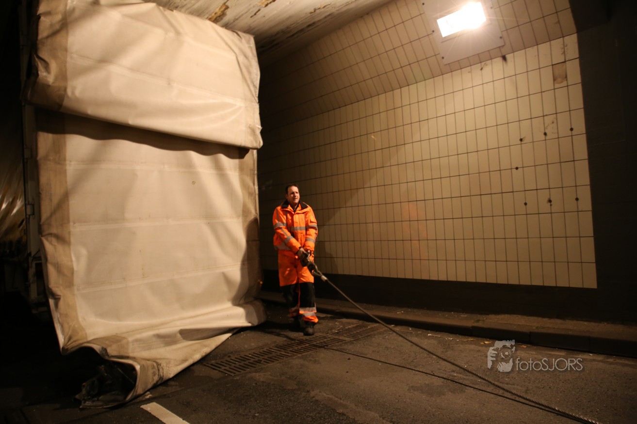 11-11-2017 - Vrachtwagen vast onder viaduct in Rotterdam Pleinweg