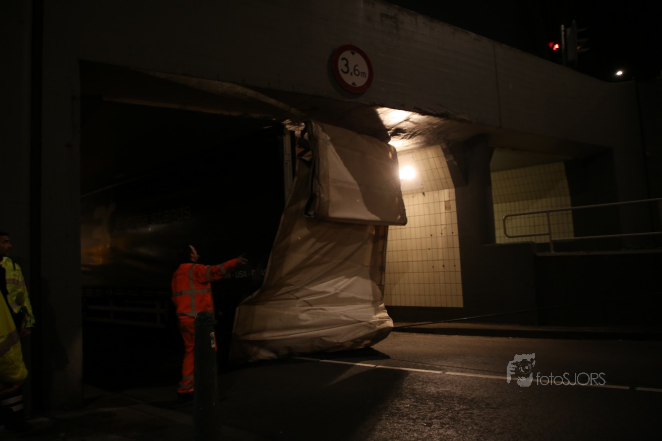 11-11-2017 - Vrachtwagen vast onder viaduct in Rotterdam Pleinweg
