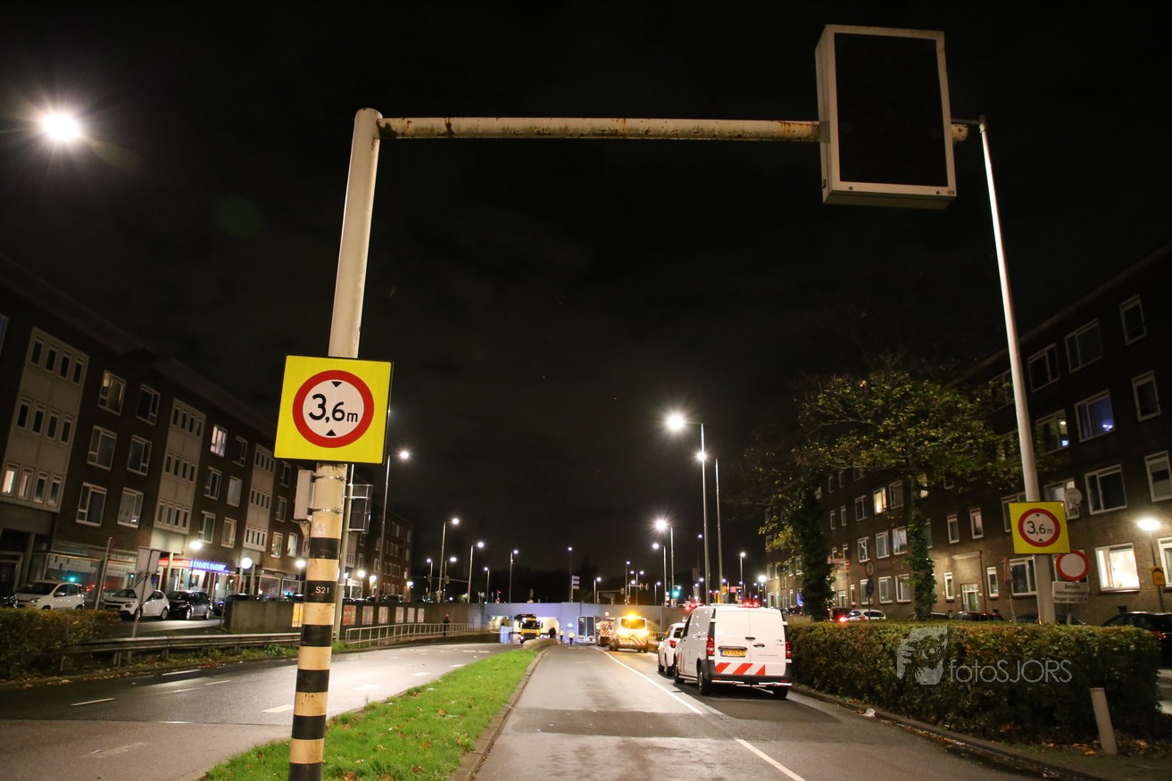 11-11-2017 - Vrachtwagen vast onder viaduct in Rotterdam Pleinweg