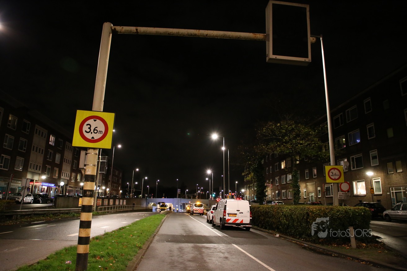 11-11-2017 - Vrachtwagen vast onder viaduct in Rotterdam Pleinweg