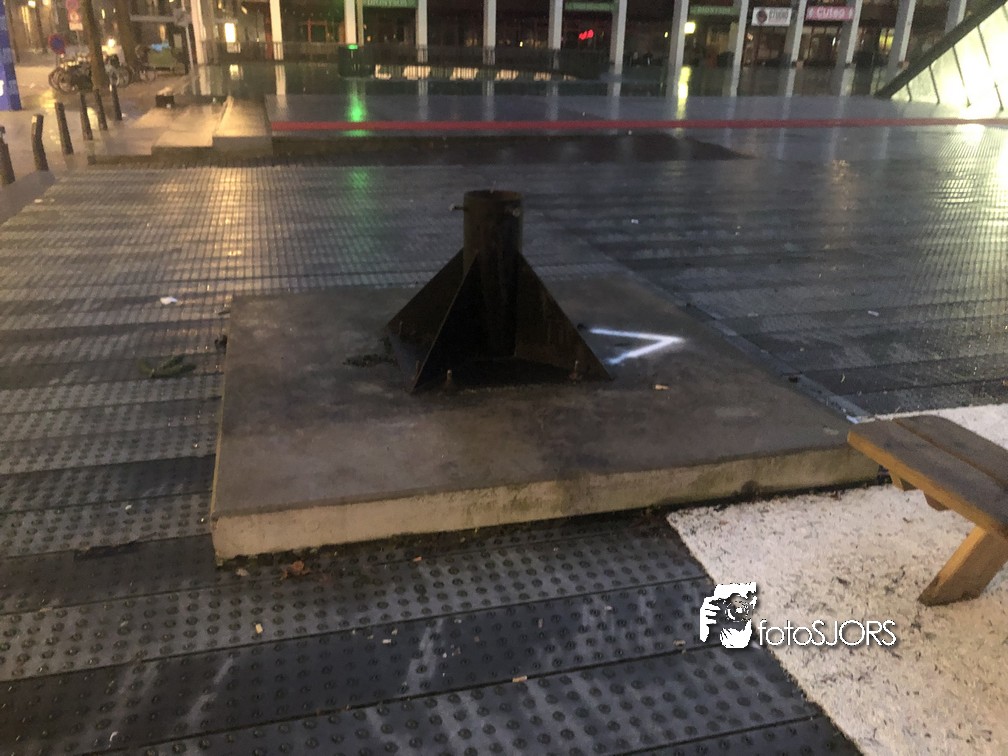 01-02-2022 - Betonplaten kerstbomen Schouwburgplein