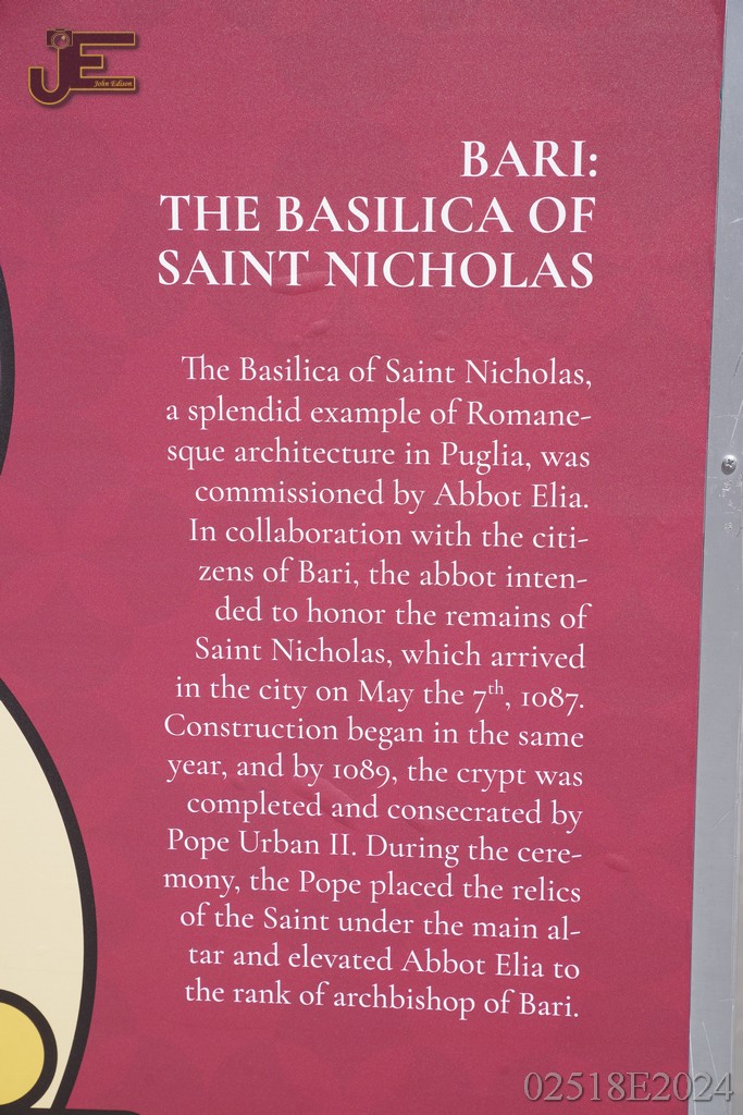 08-05-2024 - Sint Nicolaas borden op winkelstraat met levensverhaal Bari